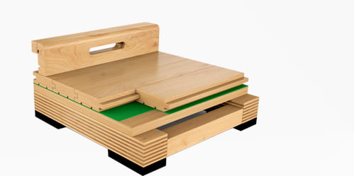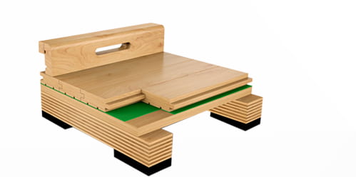 雙層龍骨結構——(專業比賽之選) 雙層龍骨結構——(專業比賽之選)- 符合德國DIN標準,彈性、吸震性良好,適用于大型比賽場館
